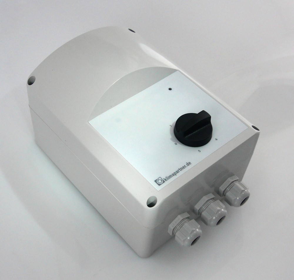 Transformatorischer Drehzahlregler 5,0 A 230 V mit Motorschutz zur schrittweisen Kontrolle der Drehzahl von Wechselstrom-Motoren (bspw. Ventilatoren, Pumpen)